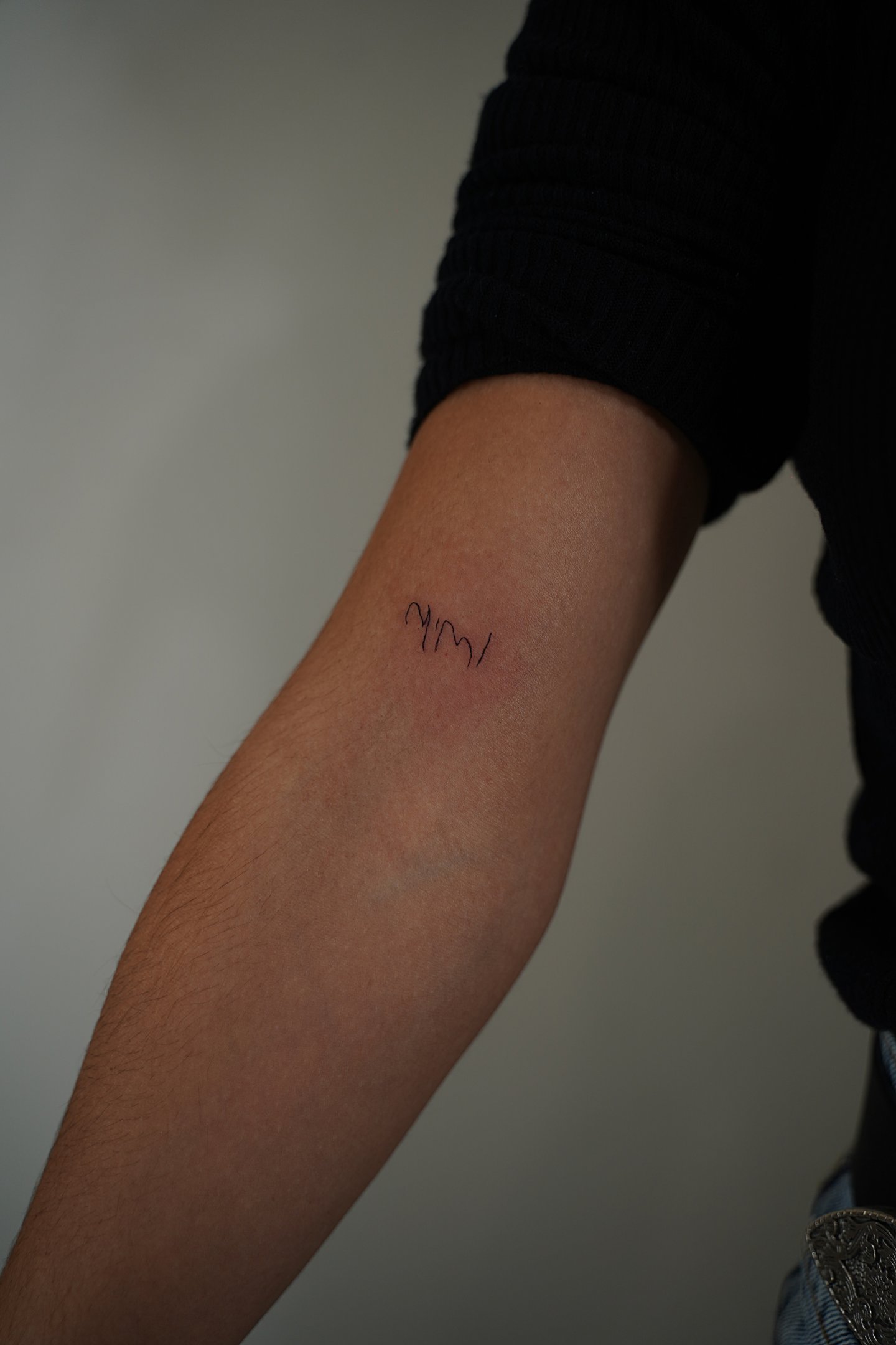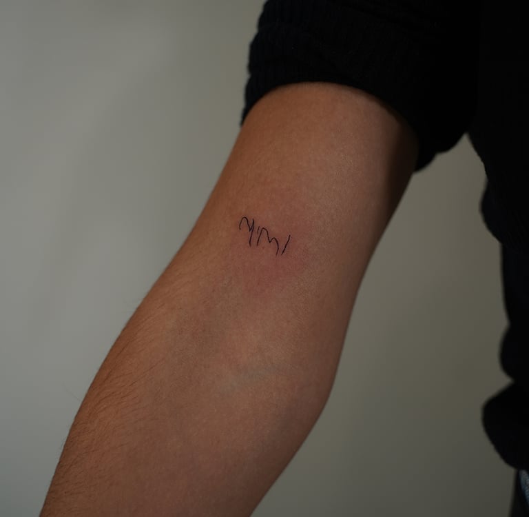 Un tatuaje pequeño y muy delicado con la palabra “mimi”, escrito por una persona especial. En este tipo de diseños lo más importante es respetar la escritura original, ya que cada trazo tiene un valor emocional único. Es un tatuaje íntimo, sencillo y cargado de significado personal.