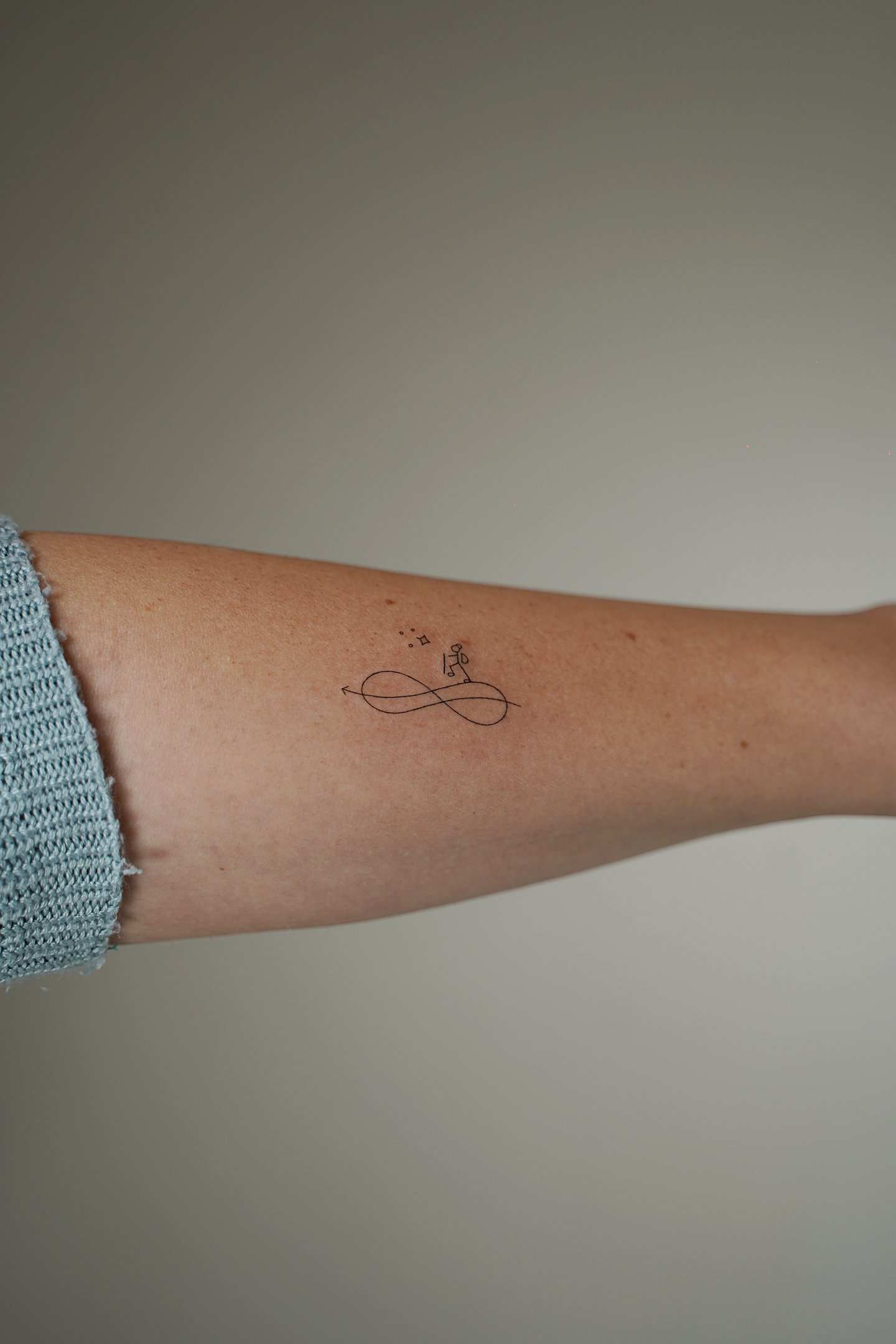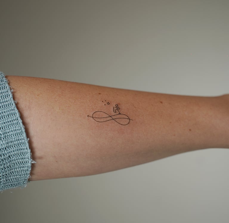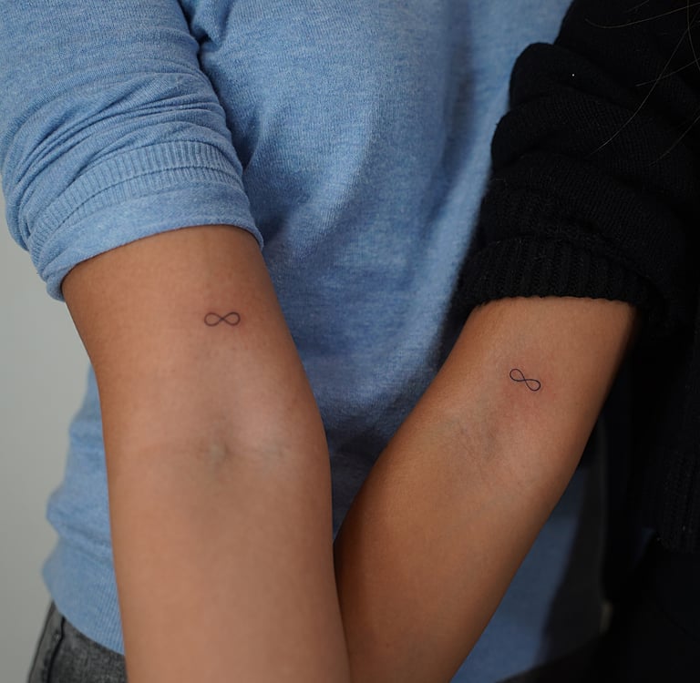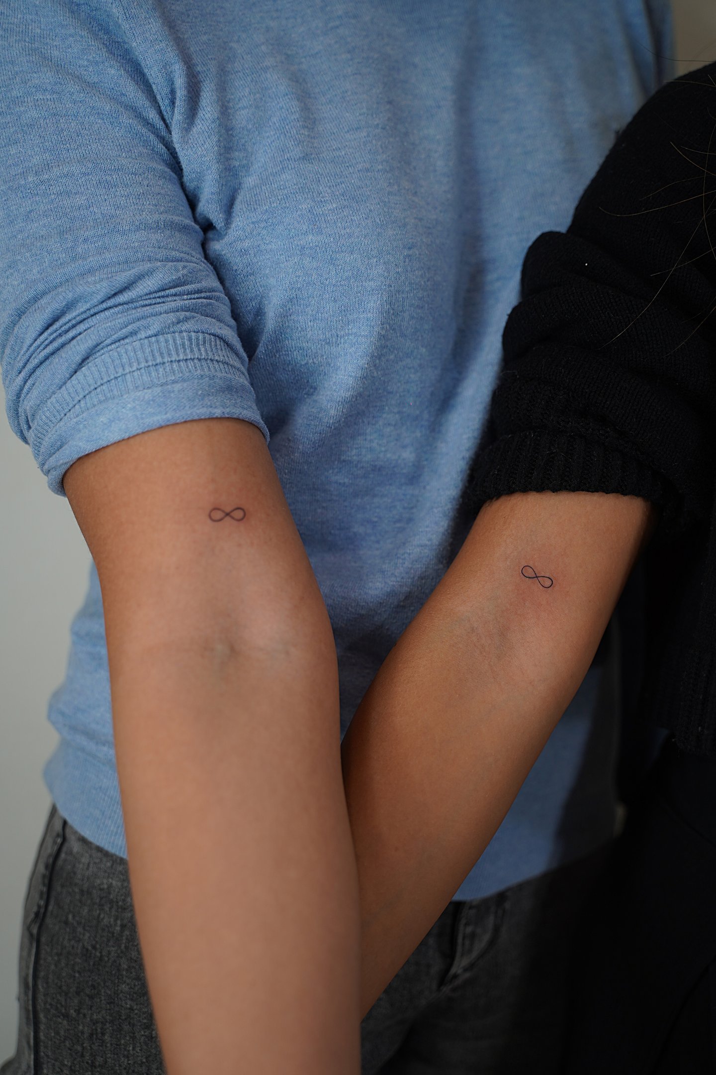 El símbolo de infinito es uno de los diseños más elegidos para tatuajes en pareja o entre amigas. Representa unión, continuidad y conexión sin final. En versión fineline, el resultado es mucho más delicado y elegante, manteniendo el significado clásico pero con una estética más actual y ligera. Un diseño sencillo que nunca pasa de moda.