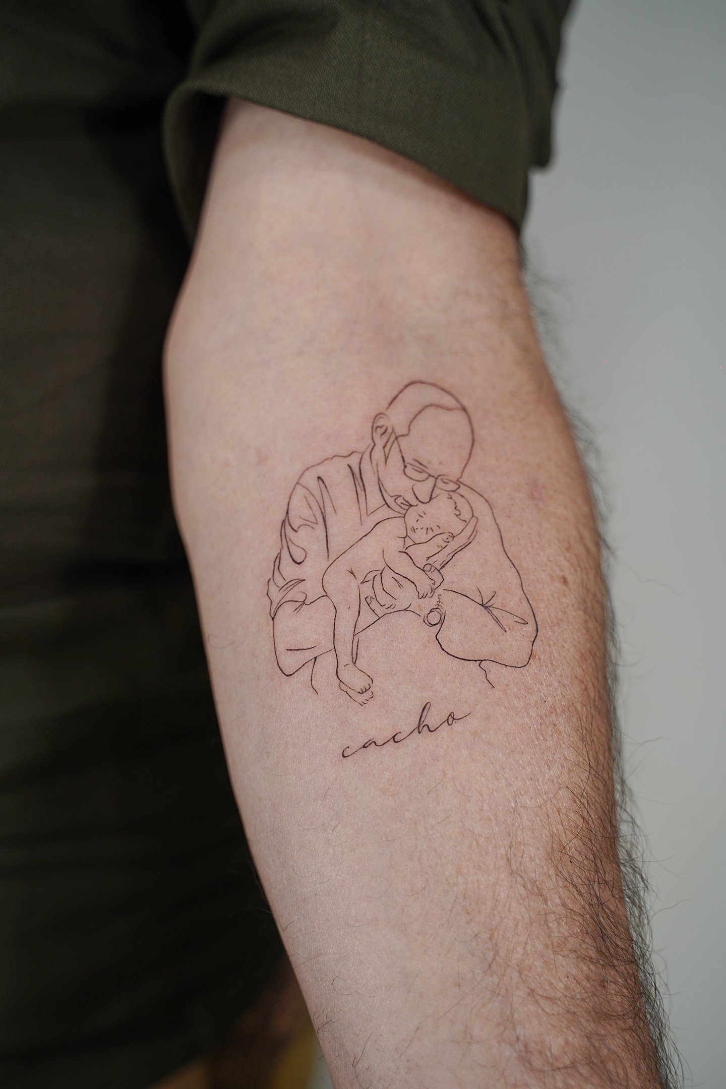 Este diseño reproduce exactamente el dibujo que nos entregaron en papel, creado por un niño. No se reinterpretó ni se estilizó: se respetó cada trazo, cada proporción y cada imperfección. Ese es precisamente el valor del tatuaje. La línea fina permite mantener la autenticidad del dibujo original y convertirlo en un recuerdo permanente lleno de significado.
