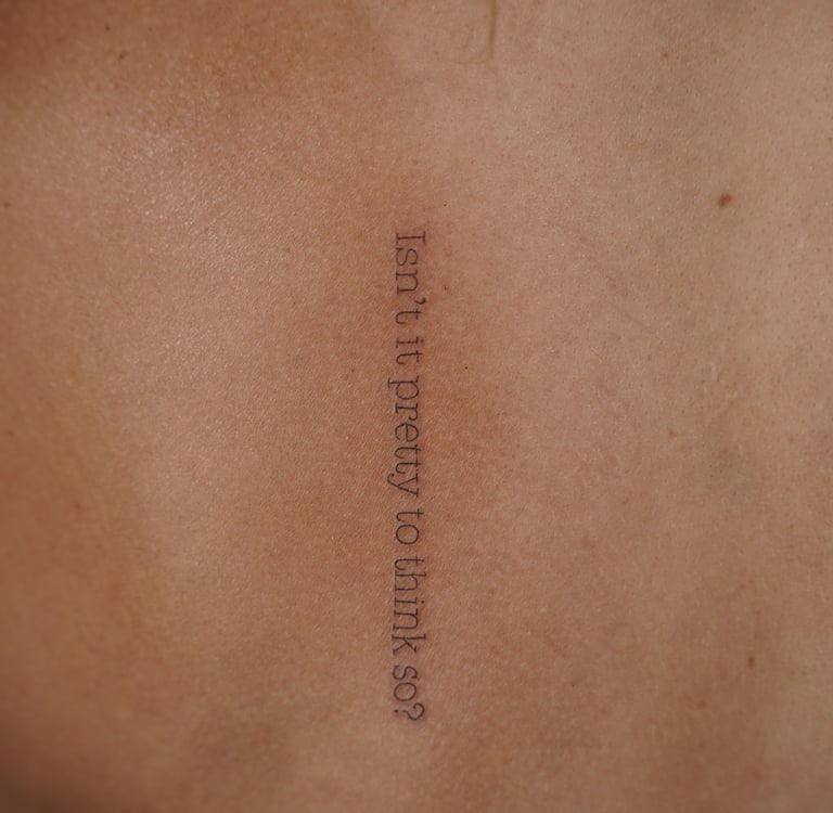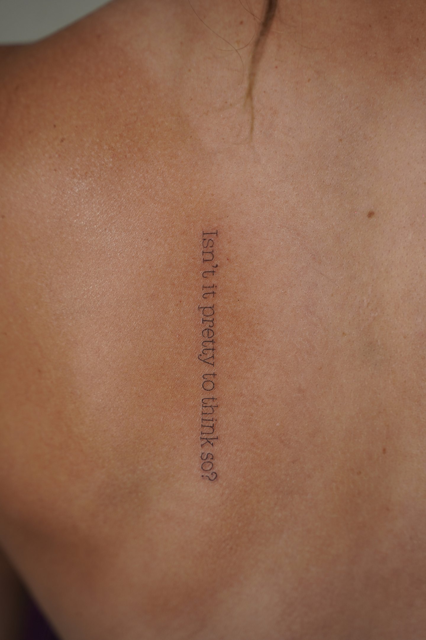 64) “Isn’t it pretty to think so?” en vertical en la espalda