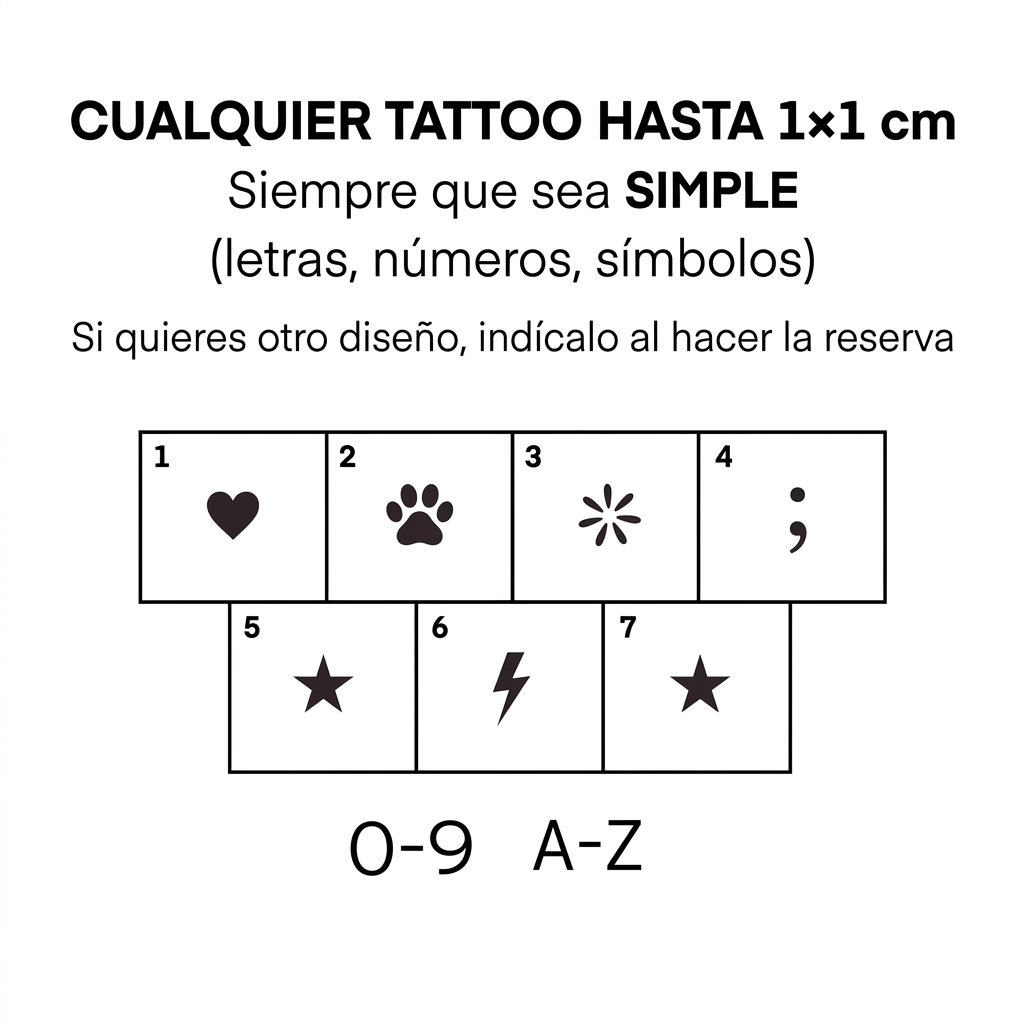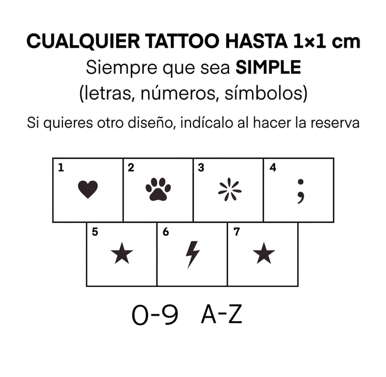 Puedes reservar directamente online y decirnos el símbolo o letra que te gustaría tatuarte.