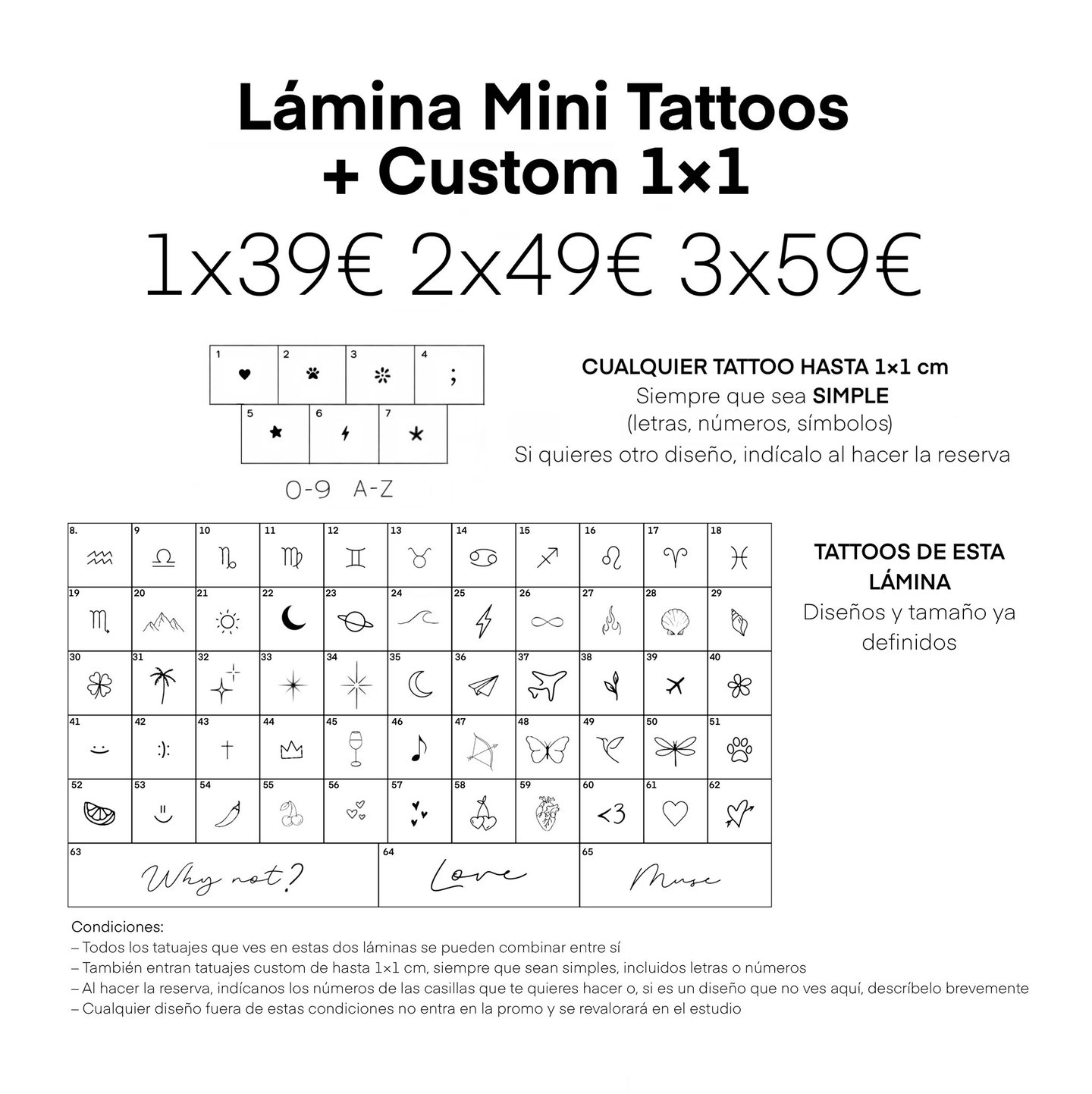 Todos los tatuajes incluidos en esta lámina tienen un precio de 39€.