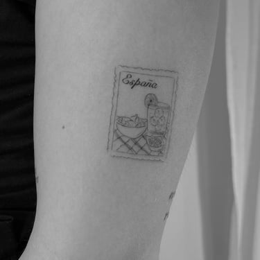 Looking for a souvenir tattoo in Madrid? At Sinkply we specialize in fine line tattoos inspired by the city. Walk-ins welcome. Book your spot today.